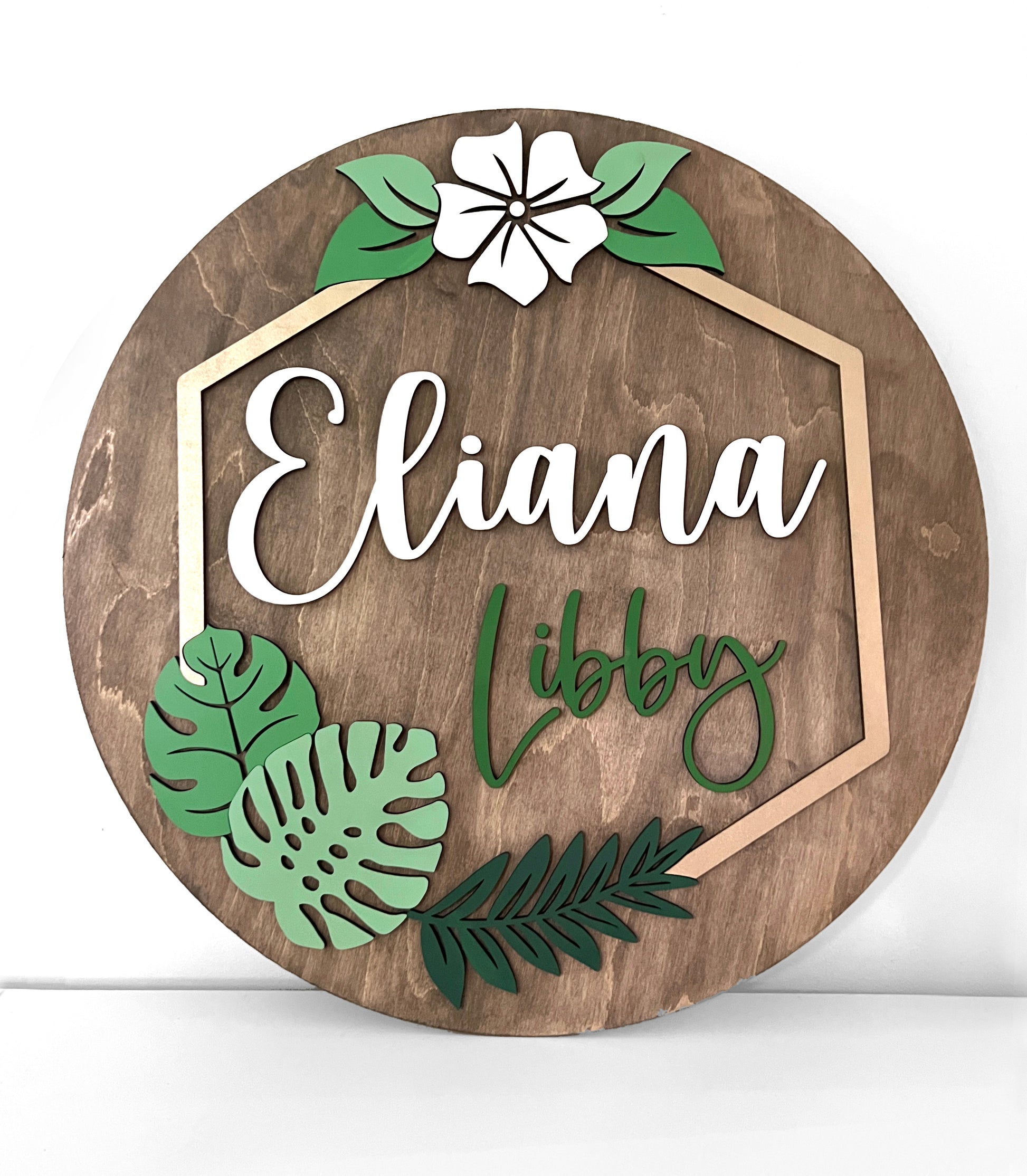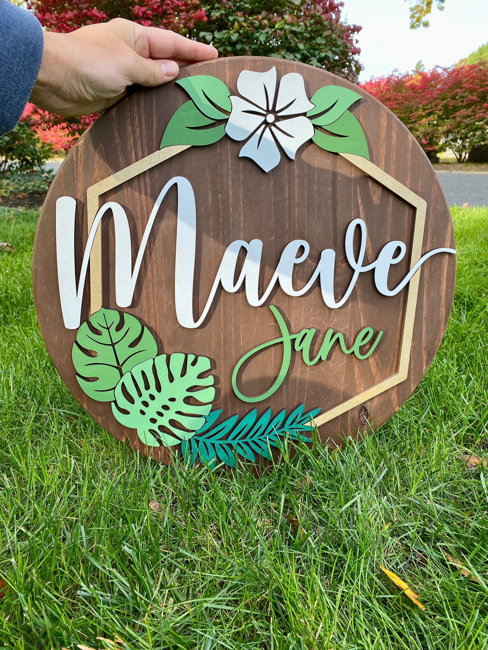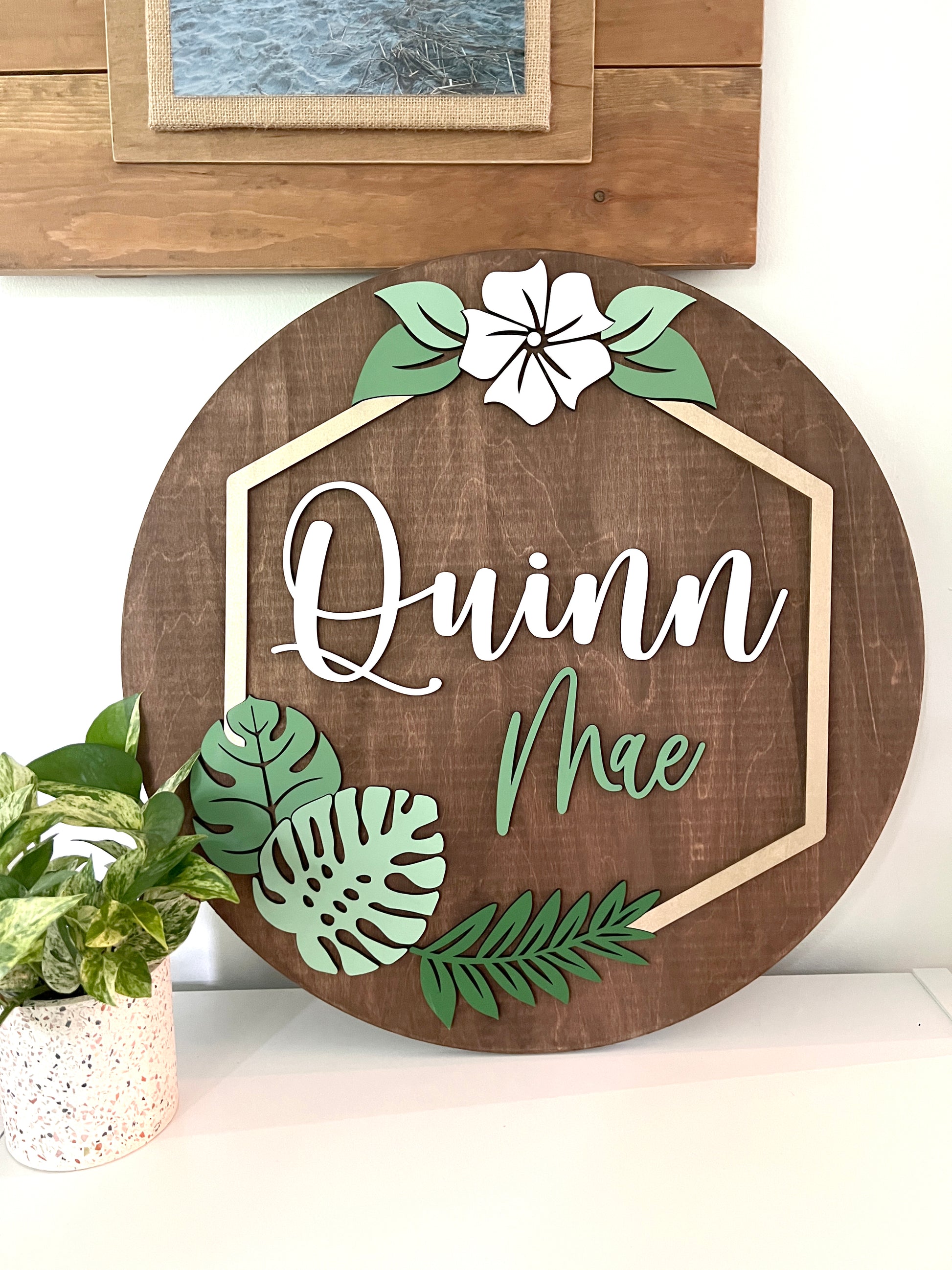Monstera Leaf Theme Wood Sign for Baby Nursery or Kids Room