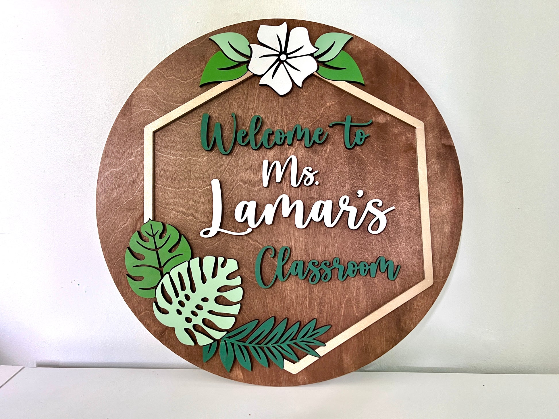 This is an adorable 3d wood sign designed for a monstera leaf plant theme.