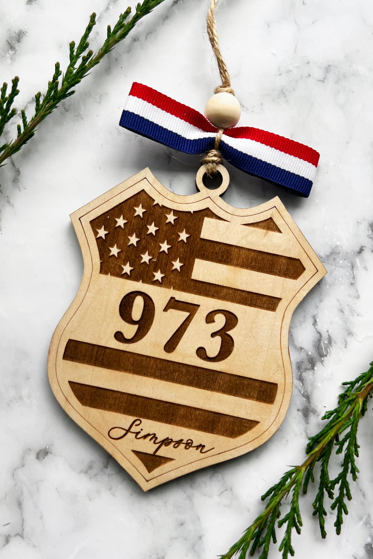 Police Badge Personalized Wood Ornament