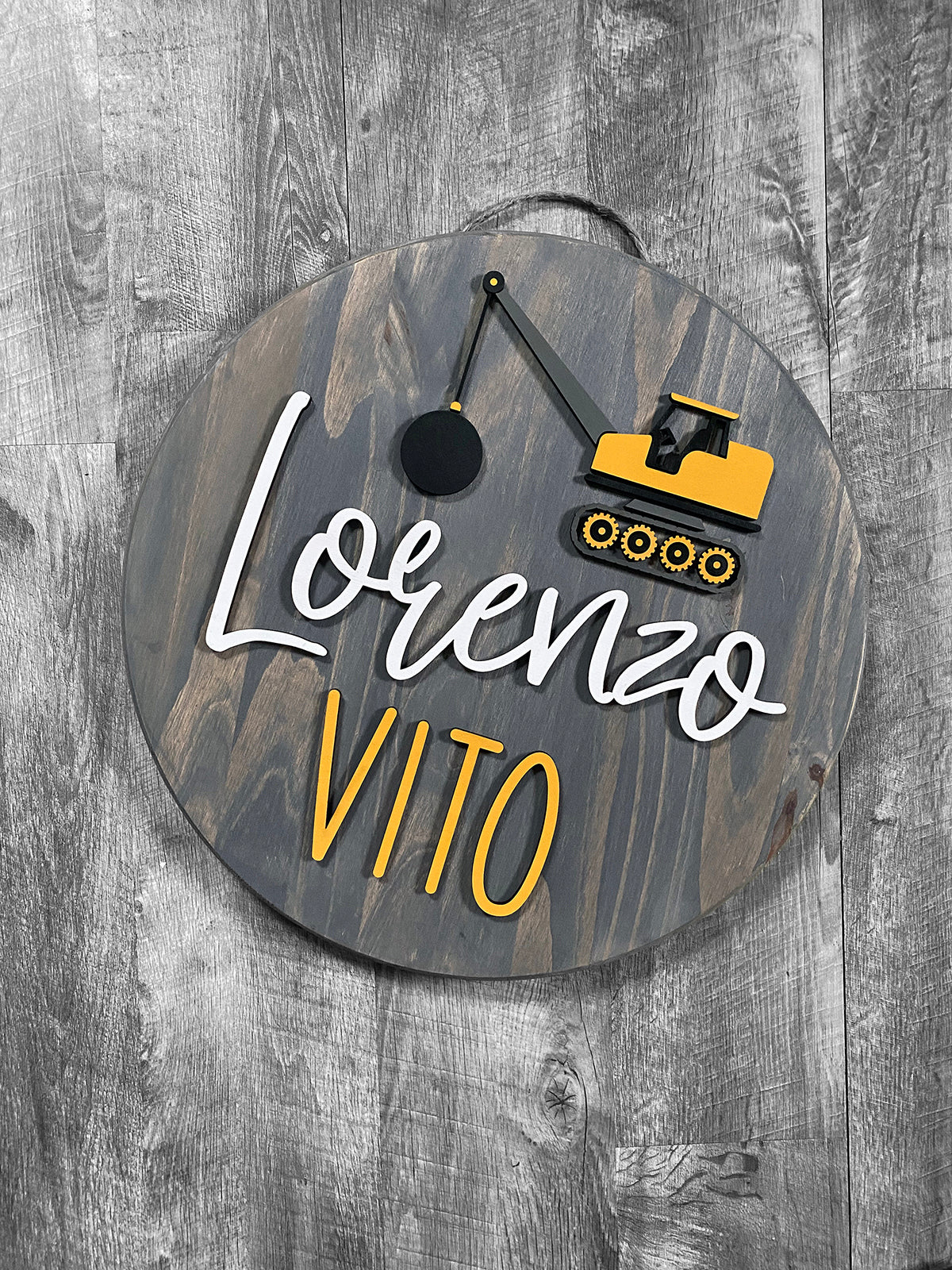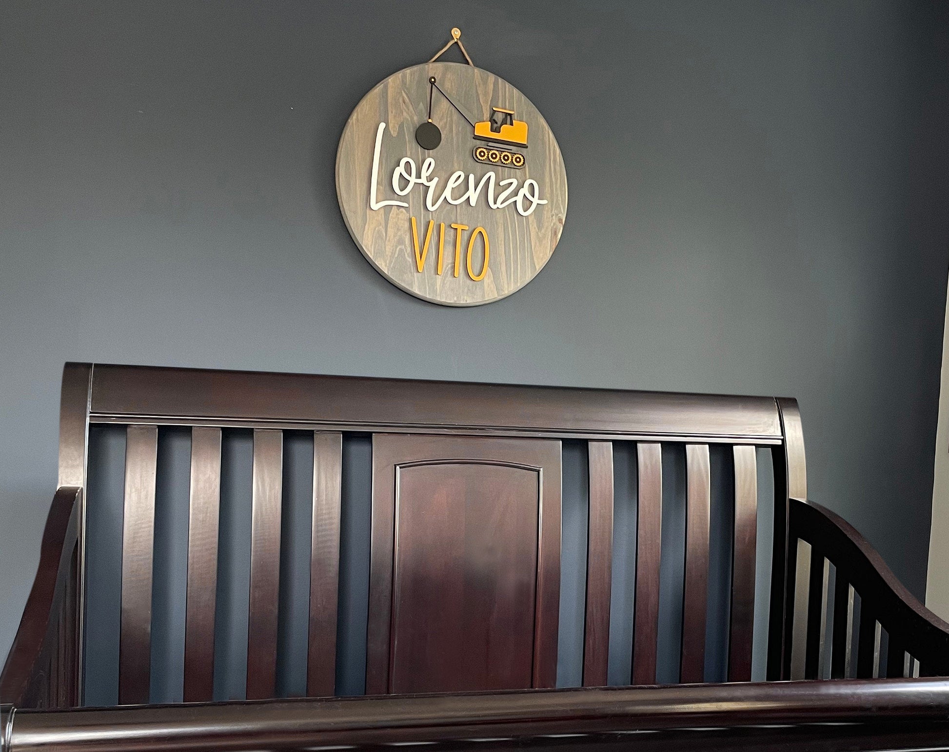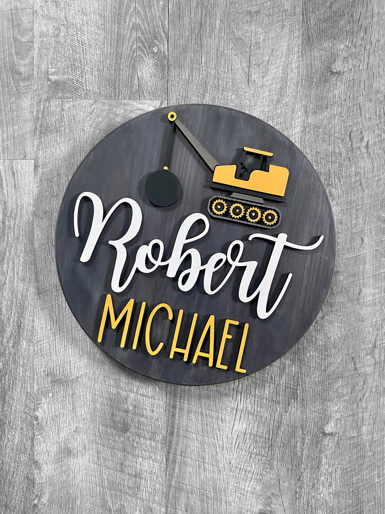 Wrecking Ball Truck Theme Wood Sign for Baby Nursery or Kids Room