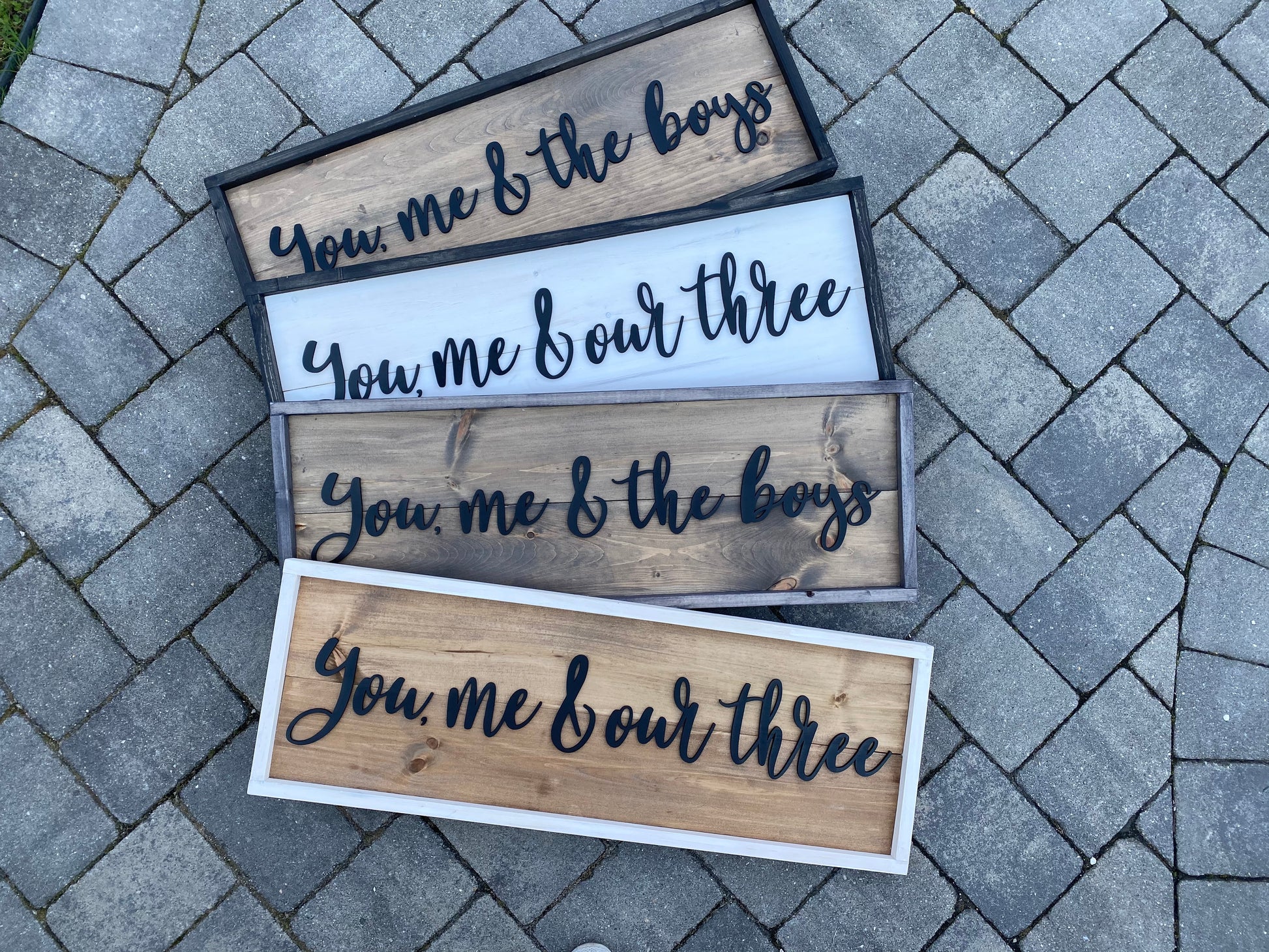 You, Me & Our Three, Wood 3D Sign, Handmade