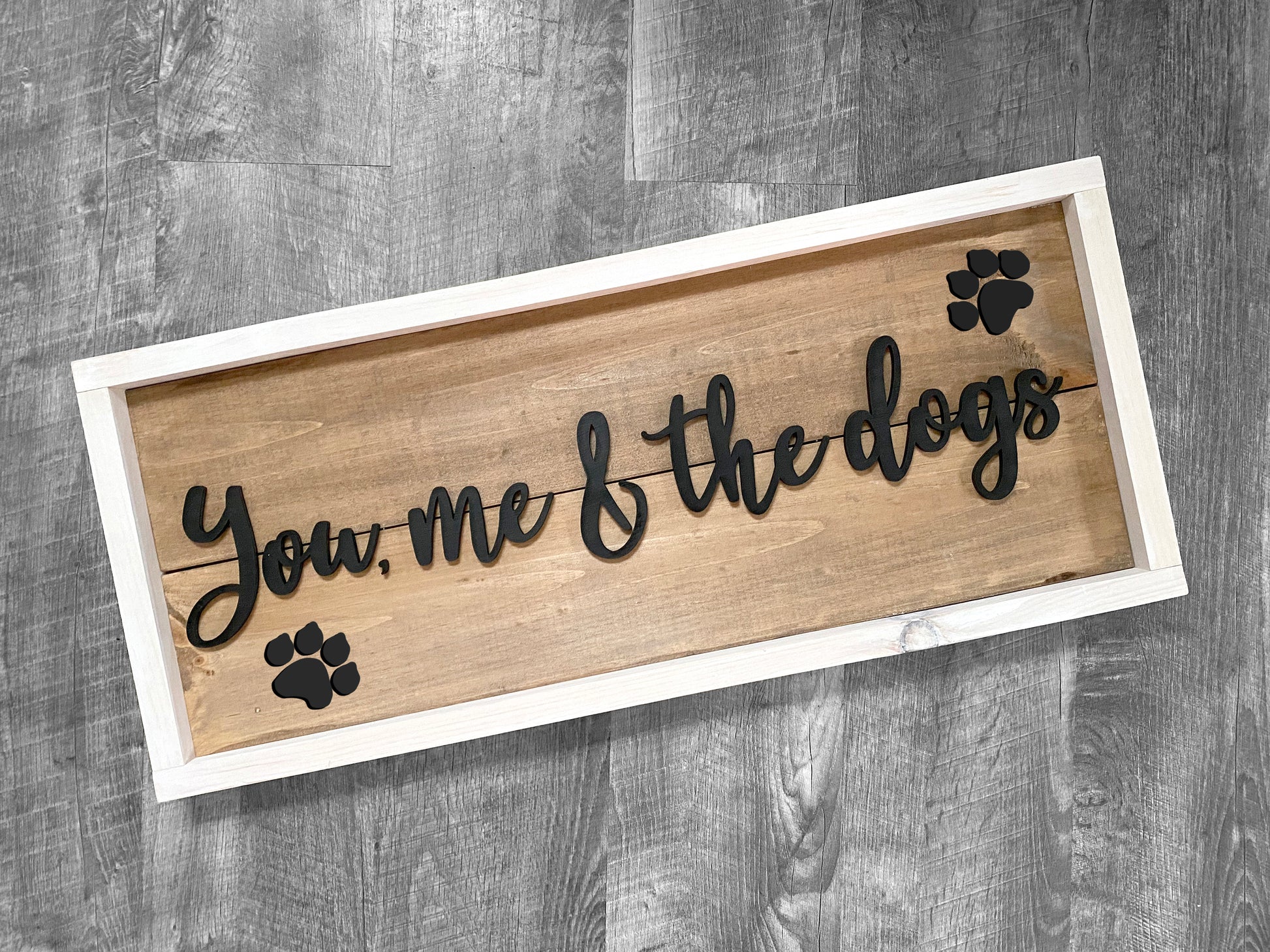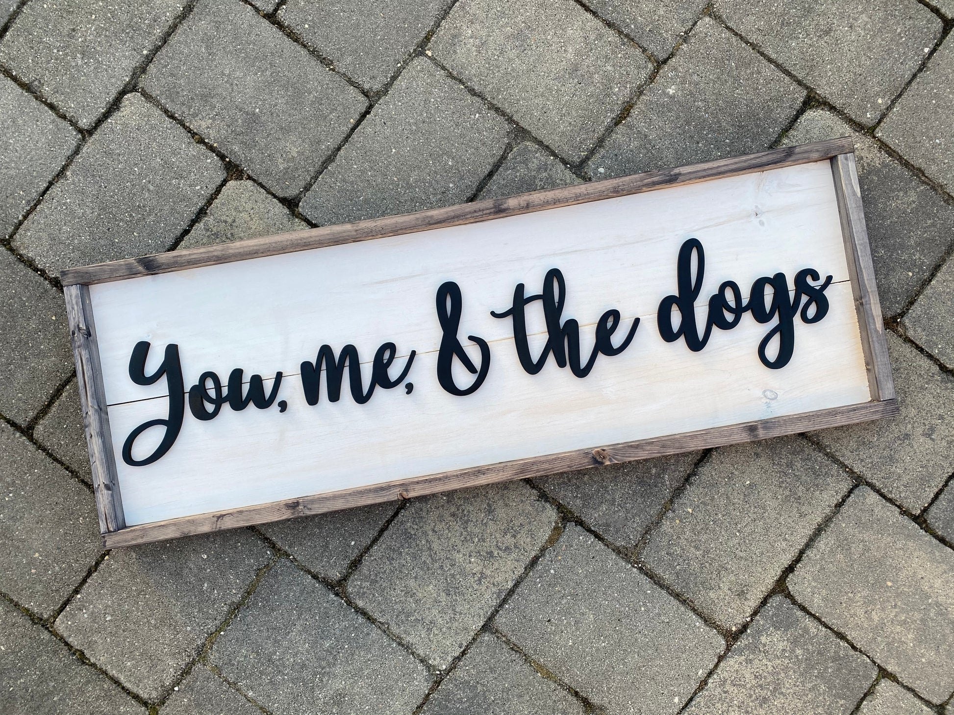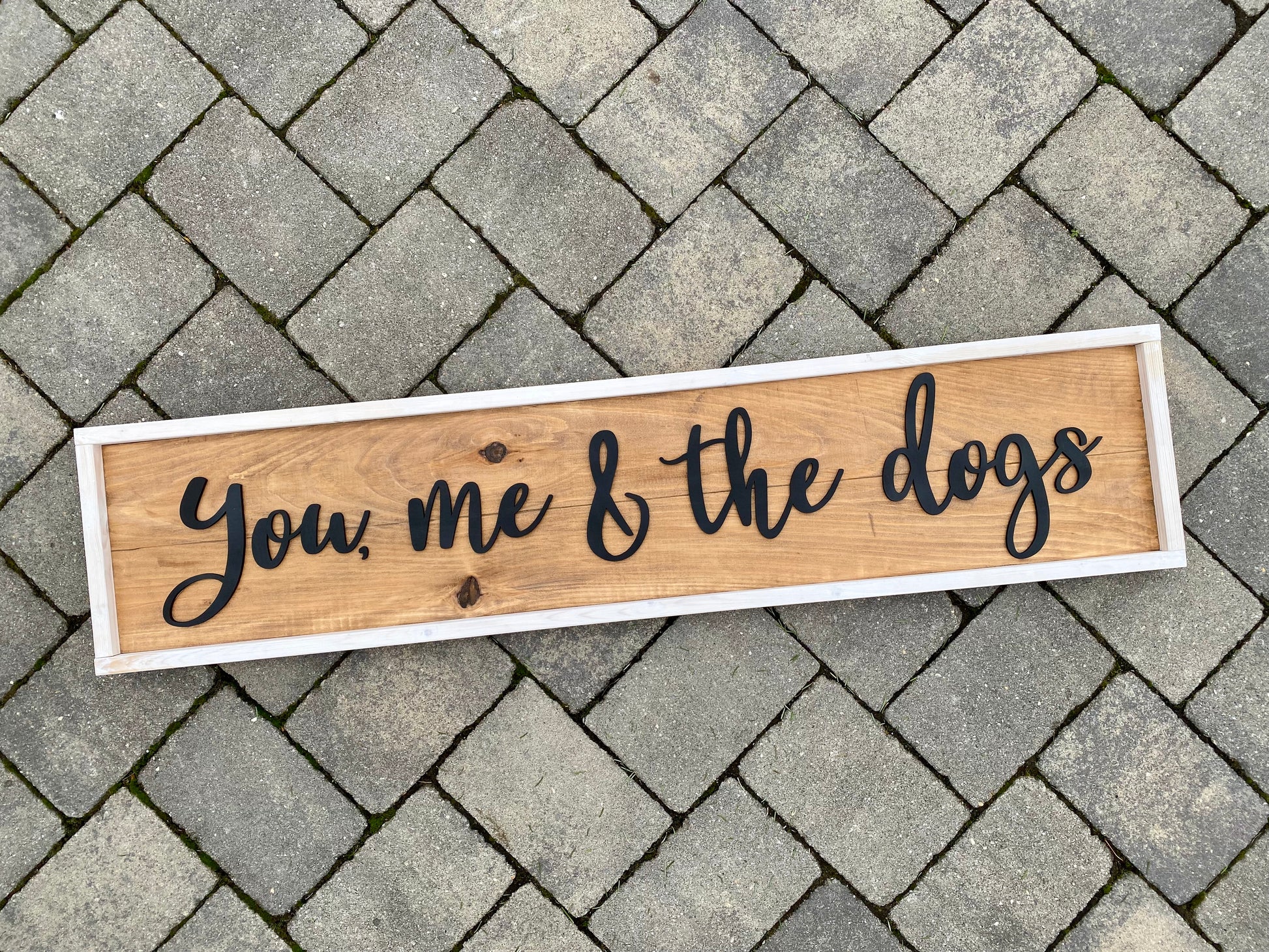 You, Me & The Dogs, Wood 3D Sign, Handmade